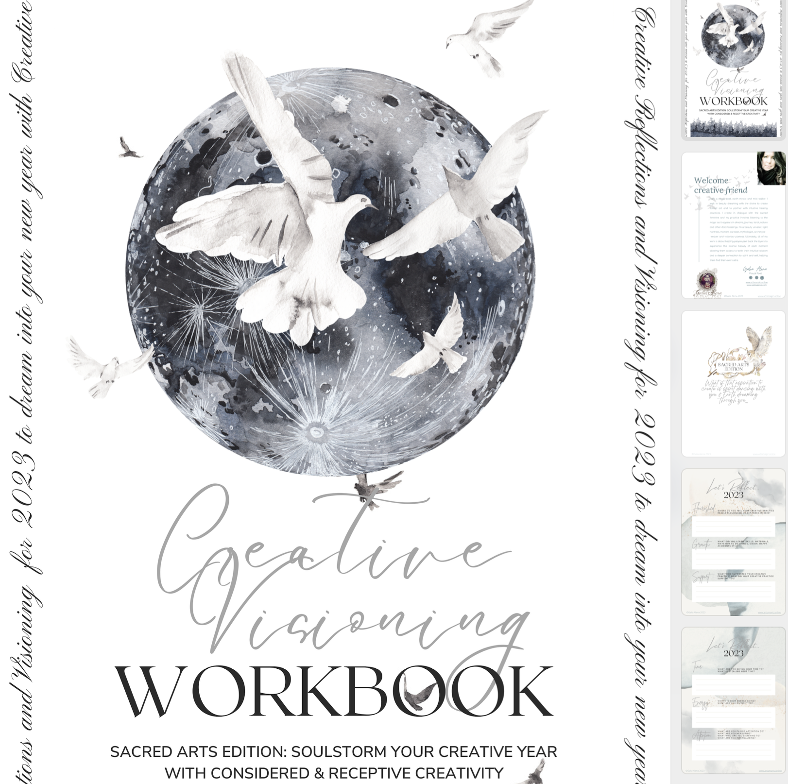 I've created a workbook for you to bring you into my practice a bit along with an audio guide on how to work with it. This workbook is designed specifically around our creative practice, to help you focus, to course correct, to call in and to align with what you want from your creative practice.
